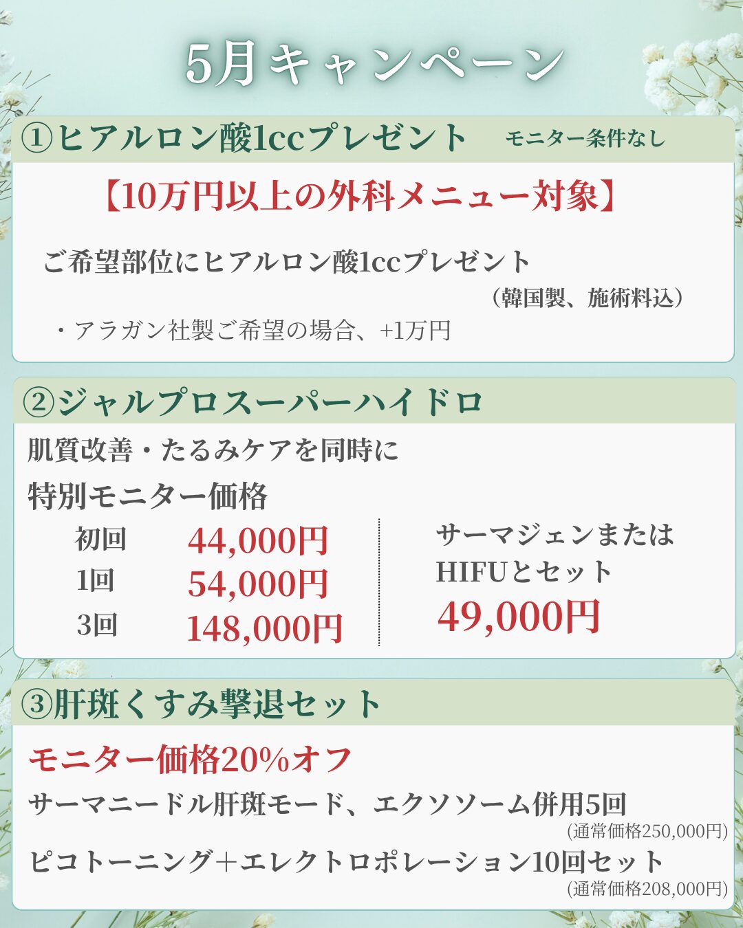 ①【10万円以上の外科メニュー対象】ヒアルロン酸1ccプレゼント