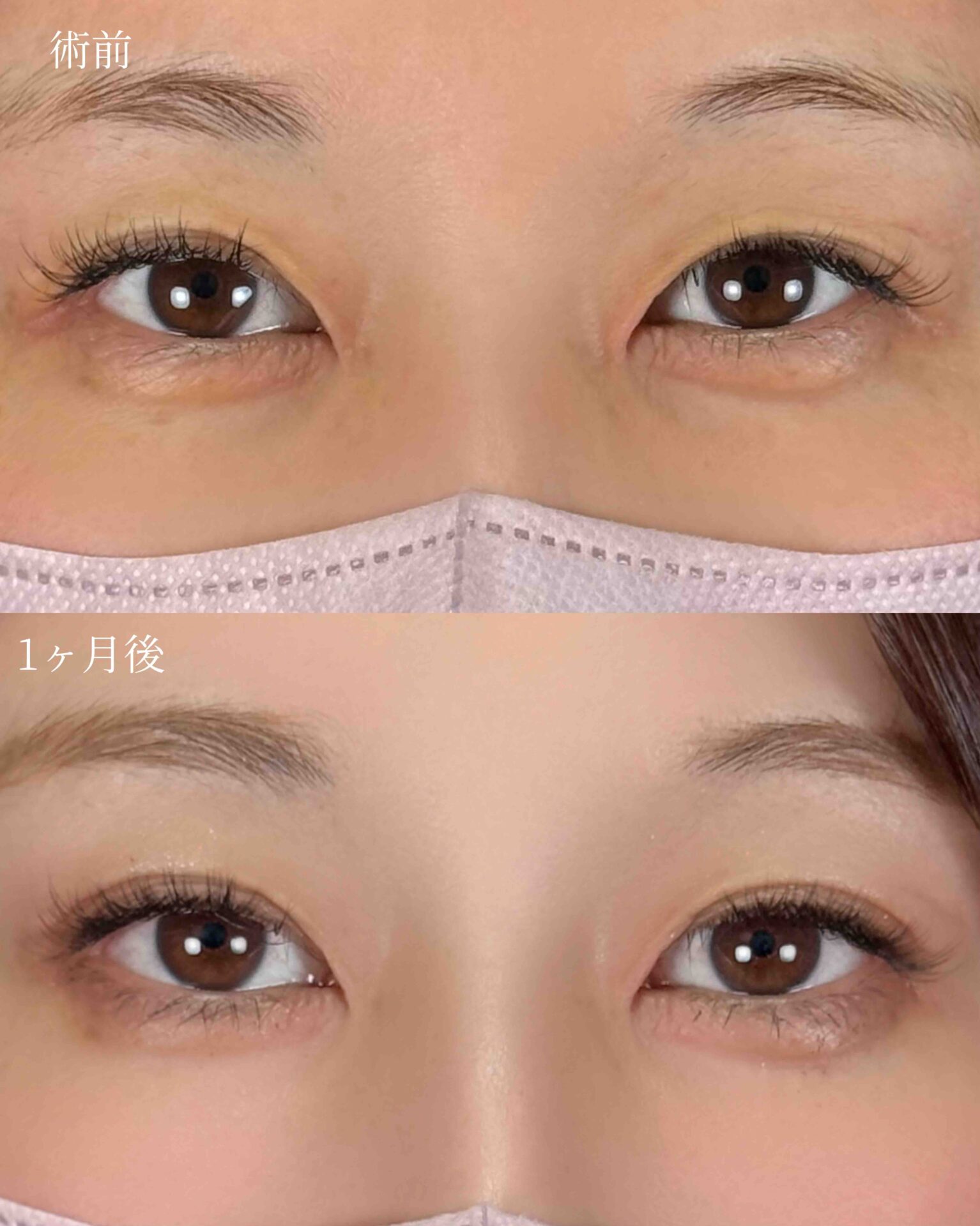 上まぶたを医療用の糸で複雑に編み込むことで二重を作ります。切開に比べてダウンタイムが短く、まぶたの傷が目立ちません。 自然に幅を広げた綺麗な二重ラインで目元が垢抜けました。