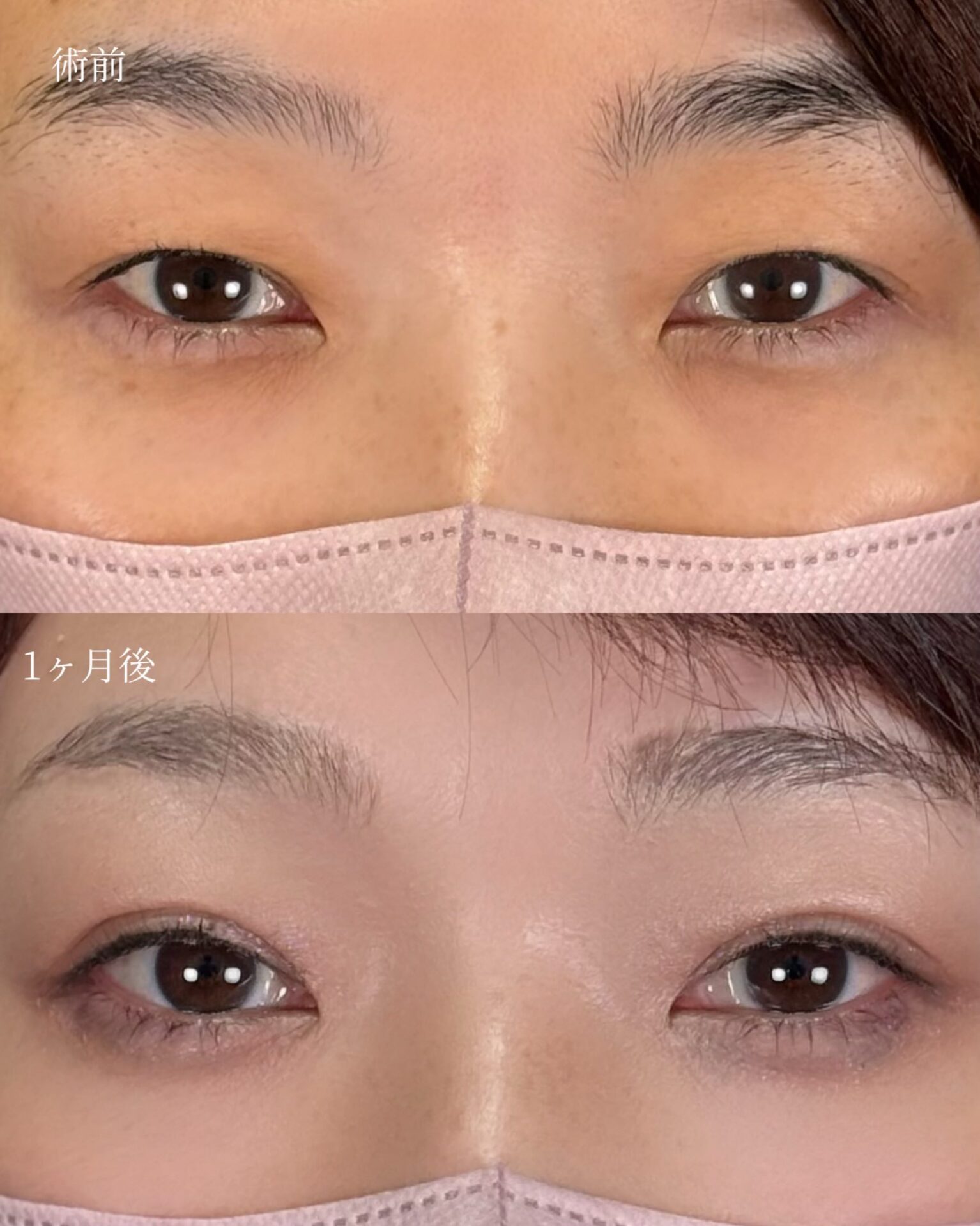 上まぶたを医療用の糸で複雑に編み込むことで二重を作ります。切開に比べてダウンタイムが短く、まぶたの傷が目立ちません。 自然に幅を広げた綺麗な二重ラインで目元が垢抜けました。