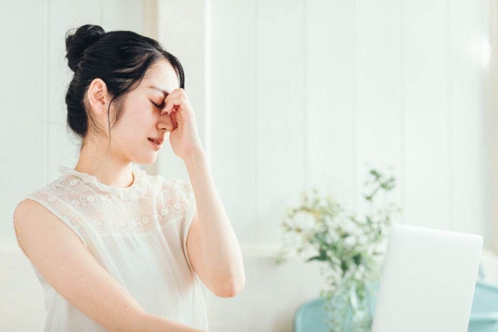 パソコンやスマートフォンを長時間使用すると、眼精疲労により目元の血行が悪化します。特にブルーライトは目の疲れを加速させるため、適度な休憩を取り、ブルーライトカットメガネの使用も検討しましょう。