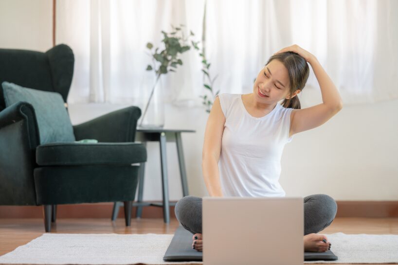 猫背は顔が前に出るため首に負担がかかります。デスクワーク時にパソコン画面が低すぎると下を向く姿勢になります。寝転がりながらのスマホや読書も首に不自然な負担をかけます。