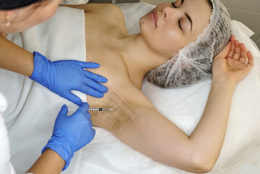 ボツリヌストキシンを脇に注入し、汗腺の働きを一時的に抑制する治療法です。効果の持続期間は4-6ヶ月程度で、夏を迎える前の4-5月に施術を受けると効果的です。注射のみで完了するため、ダウンタイムがほとんどなく、傷跡も残りません。ただし、効果は一時的で、定期的な再施術が必要です。