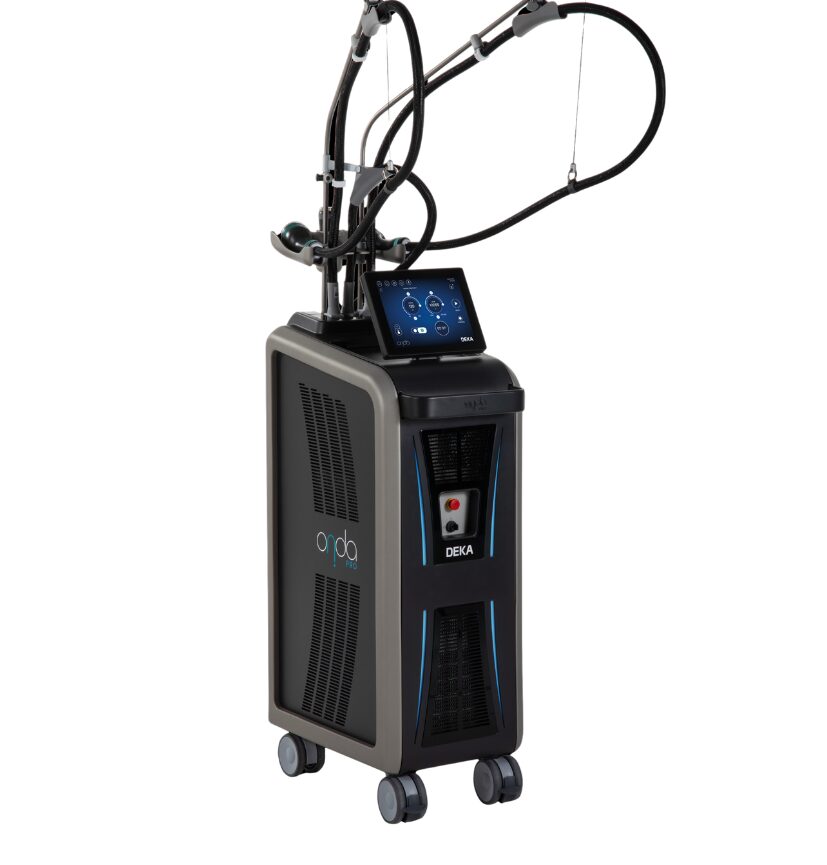オンダリフトはイタリアのDEKA社が開発した特殊なマイクロ波(Coolwaves®)を用いた機器です。表皮・真皮での吸収率が低く、脂肪層でのみ選択的に吸収・加熱されるという独自の物理的特性を持ちます。この特性によって、施術部位の表層には熱ダメージが生じにくく、他の施術と組み合わせやすいという特徴があります。