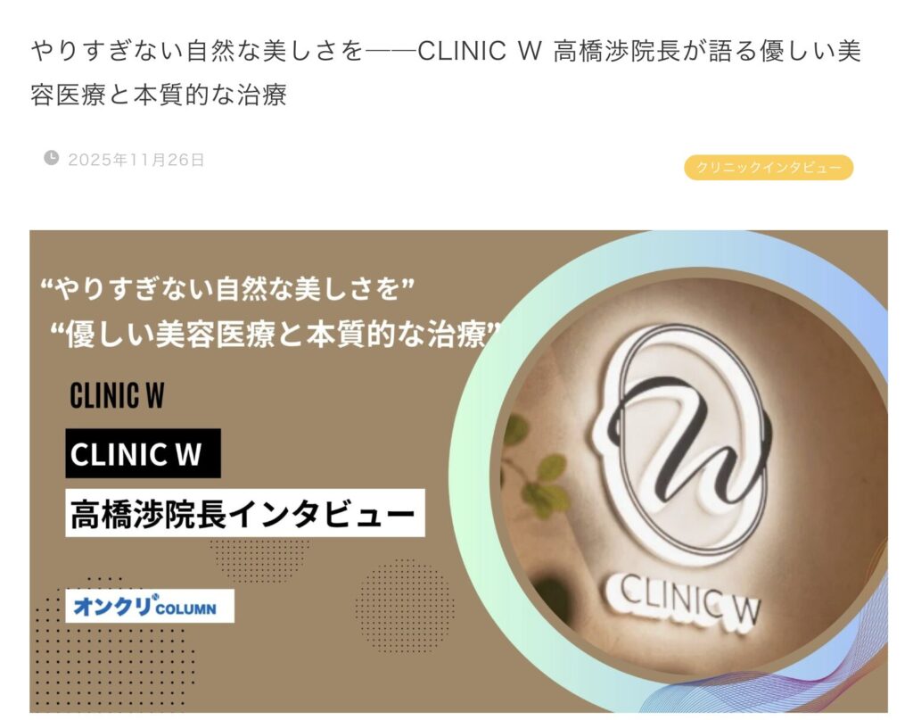 2025.12.3 「オンクリCOLUMN」の美容カテゴリでご紹介されました。 この度「オンクリCOLUMN」の美容カテゴリでご紹介されました。下記の画像よりぜひご覧ください。 この記事をシェアしよう prev 一覧 next HOME お知らせ 「オンクリCOLUMN」の美容カテゴリでご紹介されました。