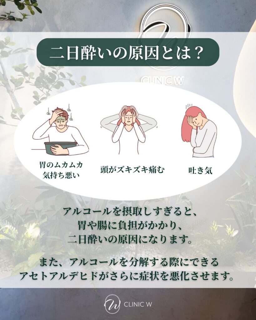 アルコールを摂取しすぎると、胃や腸に負担がかかり、肝臓でのアルコール分解も追いつかなくなります。その結果、翌日まで不快な症状が続いてしまうのです。