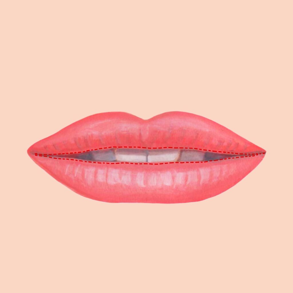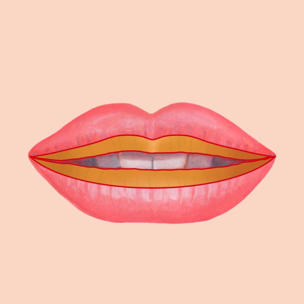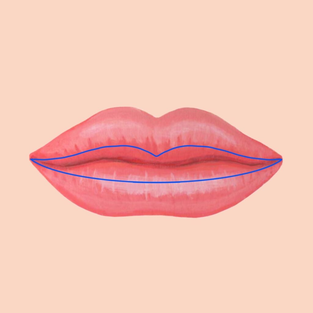 標準的には上くちびるが8mm、下くちびるが10mmとされています。また、上唇と下唇の厚みの比率は3~4:5が最も美しいとされる黄金比率です。