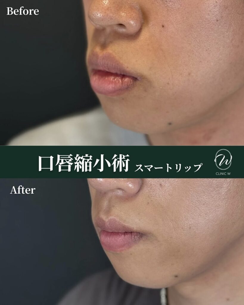 流行りの形でもあるM字リップも、この口唇縮小術を応用して対応できます。上唇を部分切除して理想の形に近づけます。
